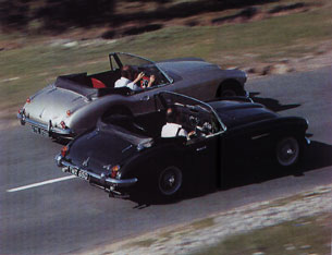 "It all came together very quickly. It was amazingly easy to cut the body and put six inches in; the chassis was a bit more complicated, but you really just position the engine and then build the frame around it. 'The whole job took well under six months-probably a lot more like three months," remembers Geoffrey Healey. "One of the biggest delays was deciding what to do with the bonnet. We tried various things and ended up with the bulge. We never liked that grille on the 3000's bonnet, and it didn't let any air in anyway - it tended only to let it out." On standard 3000 springs and dampers, the car had better ride and handling than its parent, and the performance was impressive - although the top speed, at 125mph, was much the same as on the 3000. The Healeys took the car to BMC's 'Kremlin' headquarters in Longbridge, and management were so taken with the car that in February 1967 they ordered it to be productionized immediately, for launch in January 1968. The prototype was given the Austin designation ADO 24 and MG's Syd Enever brought in to oversee the car's further development In the meantime, Healey were instructed to build six pre-production cars - two with automatic transmission, two with the four-speed Jaguar E-Type manual 'box and two with a Jaguar overdrive 'box. Six modified chassis were thus put together by regular Austin-Healey chassis supplier John Thompson Motor Pressings. and dispatched to Jensen which built the 3000 bodies; Rolls-Royce busied itself modifying the engine to meet the US emission requirements, and in designing a suitable bell-housing for the Jaguar gearboxes. And then, in April 1967, with two cars-one manual, the other manual-plus-overdrive- nearing completion, BMC reduced its requirement for pre-production cars to just these two. Not long after. it canceled the whole 4000 project, with the two cars still left unfinished. "Unbeknown to us and to BMC, Rolls Royce had suspected that BMC wouldn't he taking its full allocation of engines, and had got rid of a lot of tooling, so it wasn't really in a position to start immediate production of the engine - certain critical castings weren't available," says Geoffrey Healey. "Also BMC was running out of money. It was in a very bad way. When it found its commitment to the engine disappear, and discovered there would be additional expenditure on tooling needed..." "There was also the question of in-house rivalry between the putative Austin-Healey 4000 and the E-type Jaguar, and it's probable that Jaguar's Sir William Lyons weighed in against the car, just as he was to do with the mid-engined Rover BS. They had good reason to be worried about the 4000, as it would have offered strong performance at a price well under that of the E-type-as Geoffrey Healey emphasizes: "BMC did a complete costing of the car and the engine, so we knew what the 4000's price would be. It would have been very much cheaper than the Jaguar (In January 1968 the 3000 cost £ 1126, and the E-Type convertible £1967) The engine was not that much more expensive than the 3000's - I don't know why, but the t -series was a very costly engine. It was later found to be more expensive to make than even the aluminum alloy Rover V8!" The Healeys were thus left with two part built 4000s-both left-hand drive-and four chassis frames. The cars lay around at the Warwick works for some while, and were ultimately completed at Donald Healey's home in Cornwall, on the way being converted to right-hand drive. The cars differed in various ways from the prototype but most mainly in the use of normal steel bonnets widened to suit. These, and the widened boot-lids, were made up by welding together two cut-down standard items. The dashboards also differed, both using the standard 3000 instrument panel. without the wood and with a new center section incorporating-as on the prototype- eyeball fresh-air vents, both with one of the cars not having a glove box. "I think the differences on these later cars were mainly a matter of cheapness," says Geoffrey Healey "It was rather a messy end to the pro ject..." The prototype car, which is the one featured here, was sold in 1969 to an old friend of Donald Healey, a Mr Andrews of Bristol. The first pre-production car was apparently sold the same year to a Welsh fudge manufacturer, and ultimately ended up in Australia, where it is today owned by Austin-Healey enthusiast John Gray. Finally, Donald Healey ran the last of the pre-production cars for a while-six months or more, reckons Geoffrey Healey-and then it was sold to Austin-Healey collector Arthur Carter, who still owns it. Carter also bought three 4000 chassis-begging the question of what happened to the fourth, as Geoffrey Healey is convinced Carter bought at the same time all remaining parts from the 4000 project. "We may have carved one up for some reason, or one may have gone to MG or been used for torsional testing somewhere. Or maybe one chassis was cut up and used to repair an existing 3000-that sort of thing used to happen," he says. The prototype was found in 1974 by Joe Cox former national chairman of the Austin-Healey Club. Still belonging to Mr Andrews, it was languishing at a Bristol auto-electrician's, awaiting parts. Apparently previously kept in a steel store at Mr Andrews's works, it had been damaged by steel stock falling on it, and in addition had suffered paint problems on the bonnet and boot, owing to some sort of chemical reaction with the welding: or so it appeared-in any case both panels had somewhat bizarrely been covered with leather cloth. Joe persuaded his father Peter to buy the car and it was fully restored at John Chatham discovered c 1976-7 period. But how good a car is the 4000? Would it have been a worthy replacement for the 3000 or was it an unfortunate move in the wrong direction to find out who better to ask to sample the Cox car than long-established Healey specialist and leading Big Healey racer John Chatham? Especially as Chatham had made